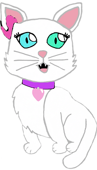 Uma gata com heterocromia e que por ter um problema de audição, tem um belo aparelho auditivo rosa.